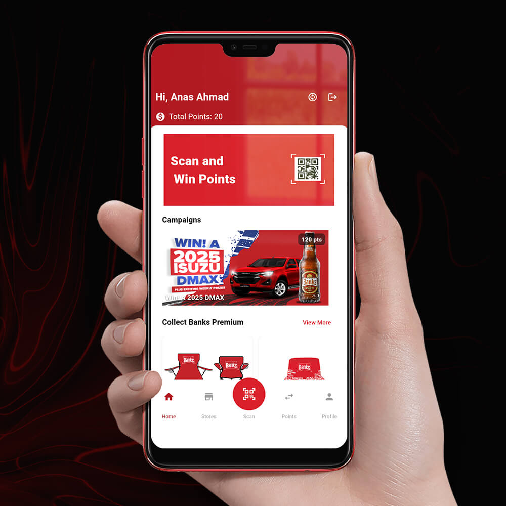 Banks Holding Limited partnered with Eraxon to build a dynamic mobile app designed to elevate customer engagement. The app promotes company events, boosts brand loyalty, and rewards users with redeemable points earned by purchasing Banks bottles and scanning QR codes—creating a seamless, interactive brand experience.